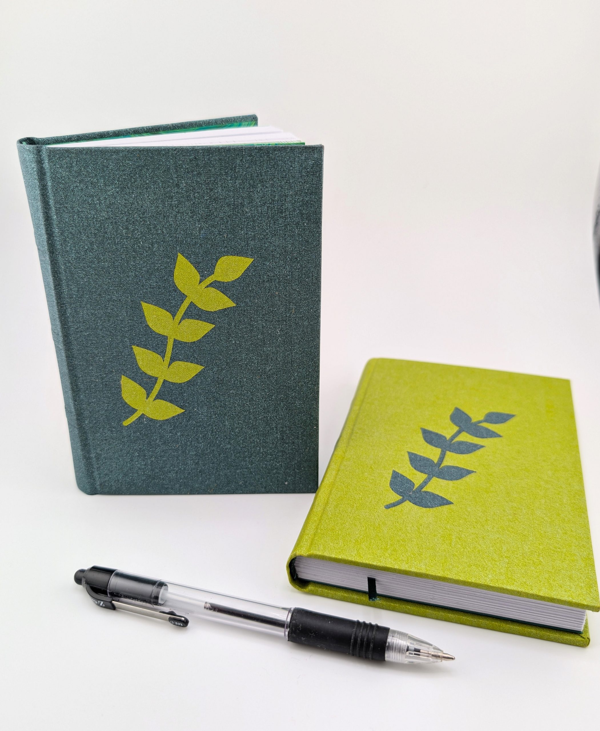 This Journal, is a full cloth bound book has 80 pages of 120gsm 100% recycled paper, the boards are also made from recycled materials.