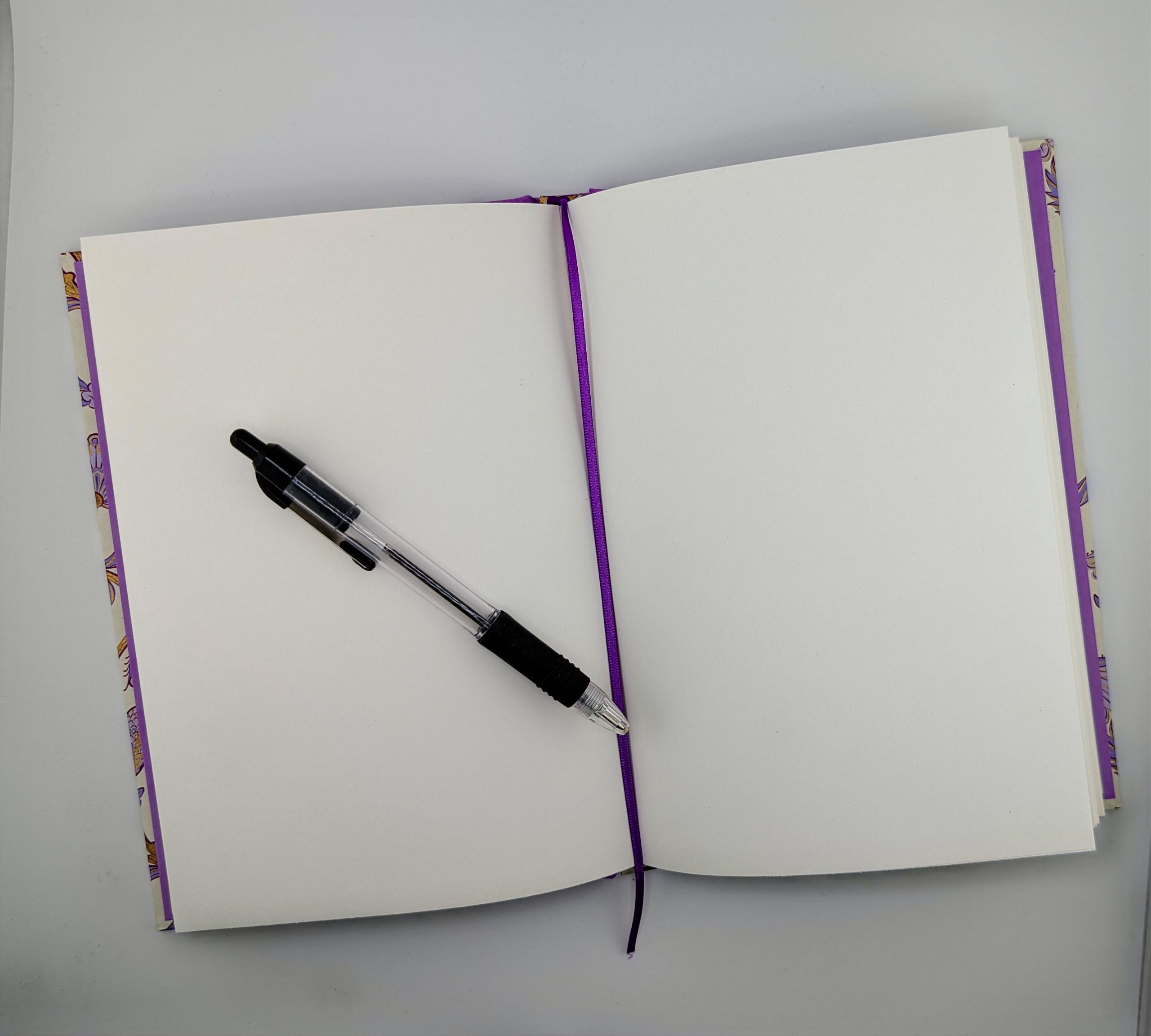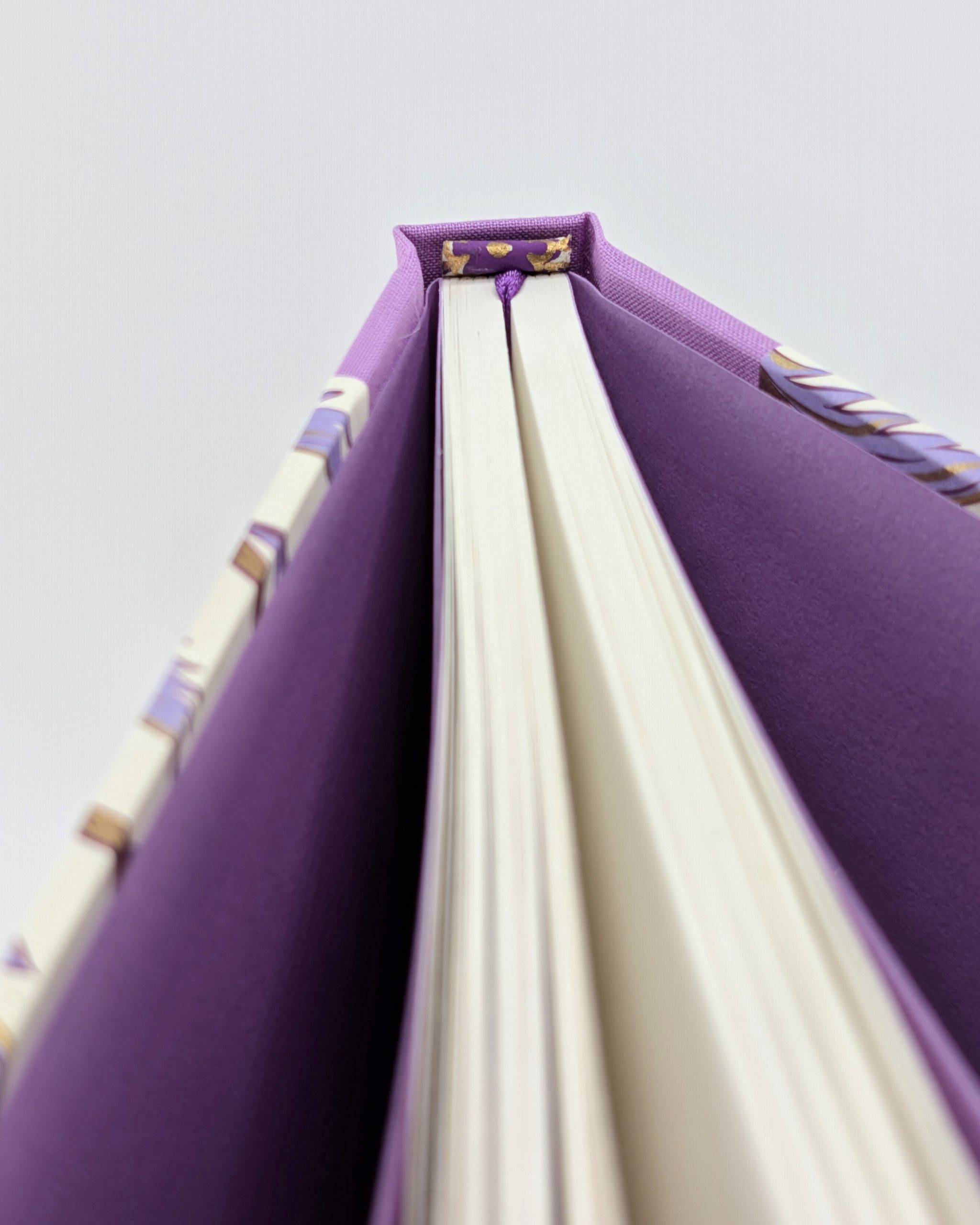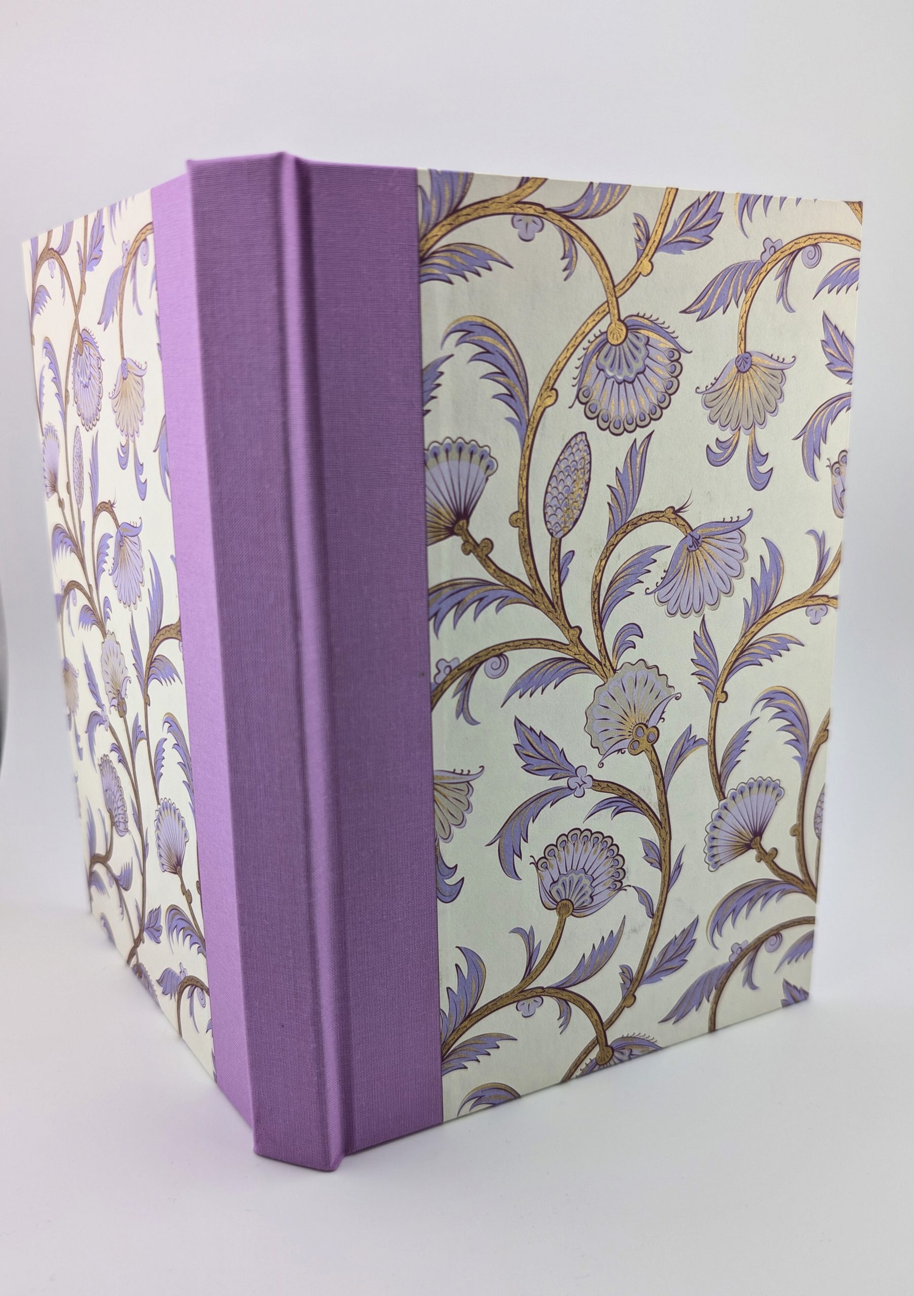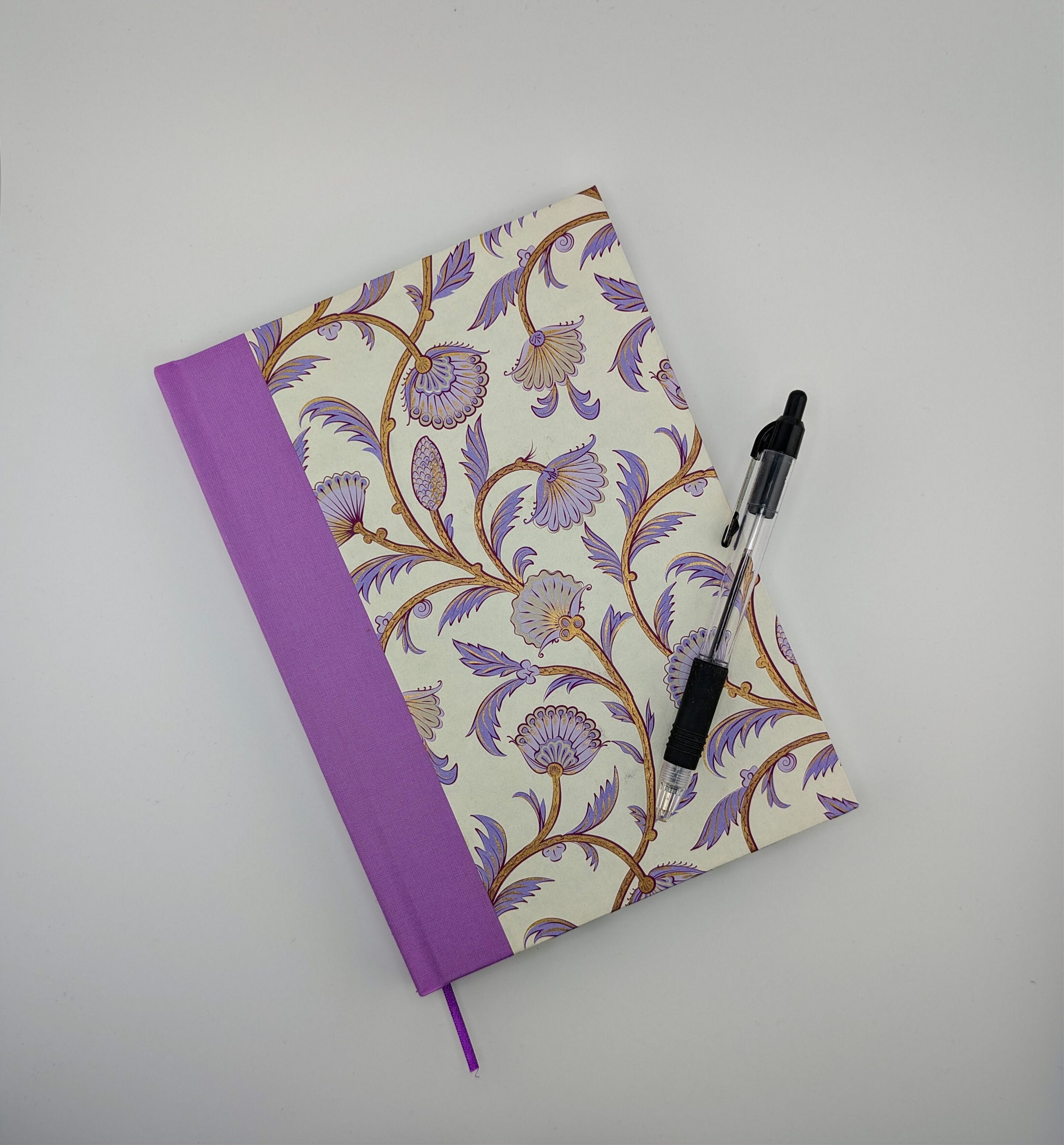 This journal has 80 pages of 120gsm recycled paper and is bound using the same tools and techniques employed by crafts men and women for hundreds of years. Sewn with waxed linen thread and cased within recycled board, lilac bookcloth and a wonderful lilac papyrus designed paper. It has a purple satin pagemarker.
