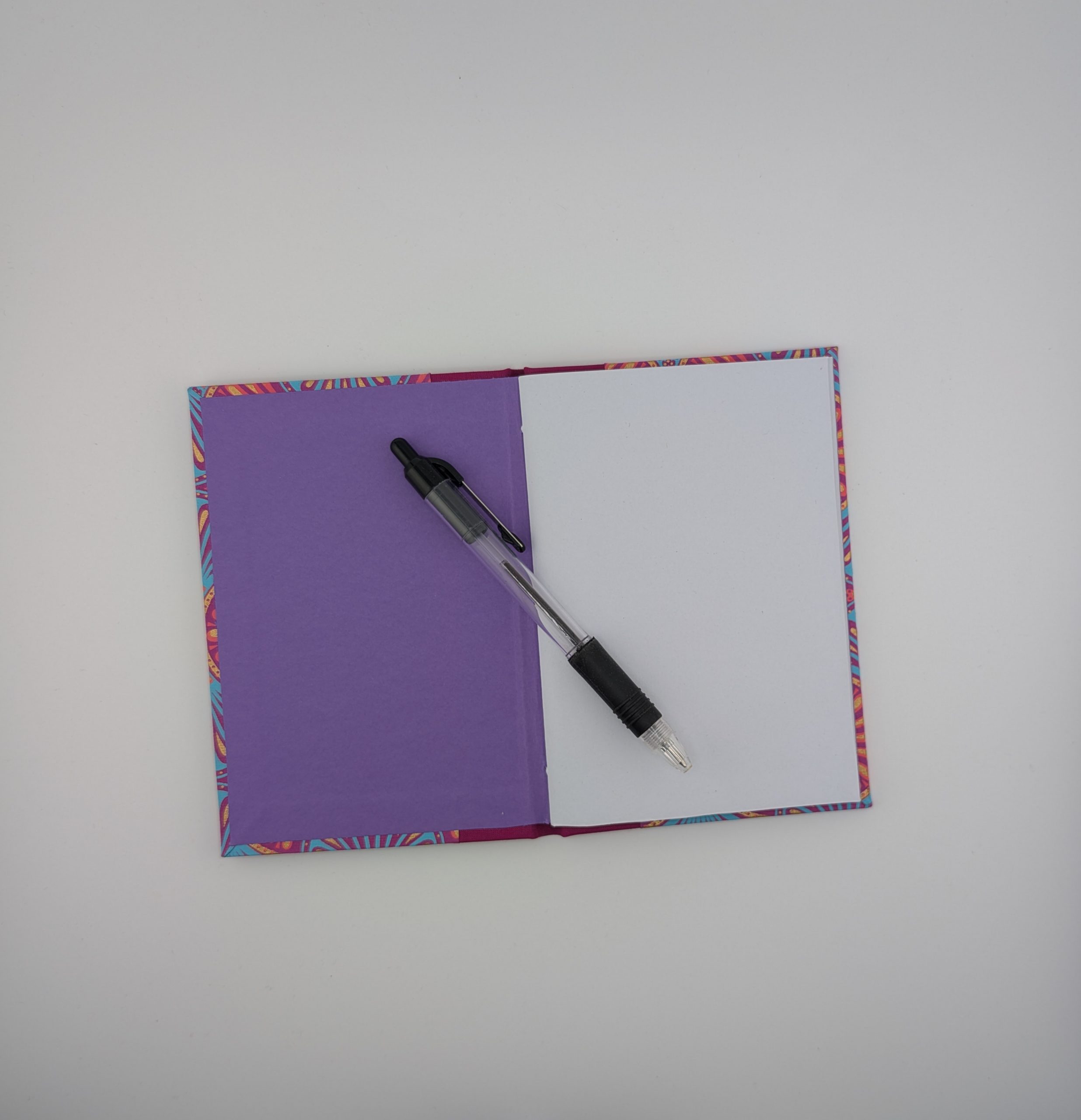 Each notebook has its own subtle character, reflecting both the handmade process and the reclaimed materials used. The solid binding allows the pages to open comfortably, making it easy to write across every spread. Thoughtfully made and environmentally conscious, this notebook is perfect for journaling, creative projects, or mindful note-taking.
