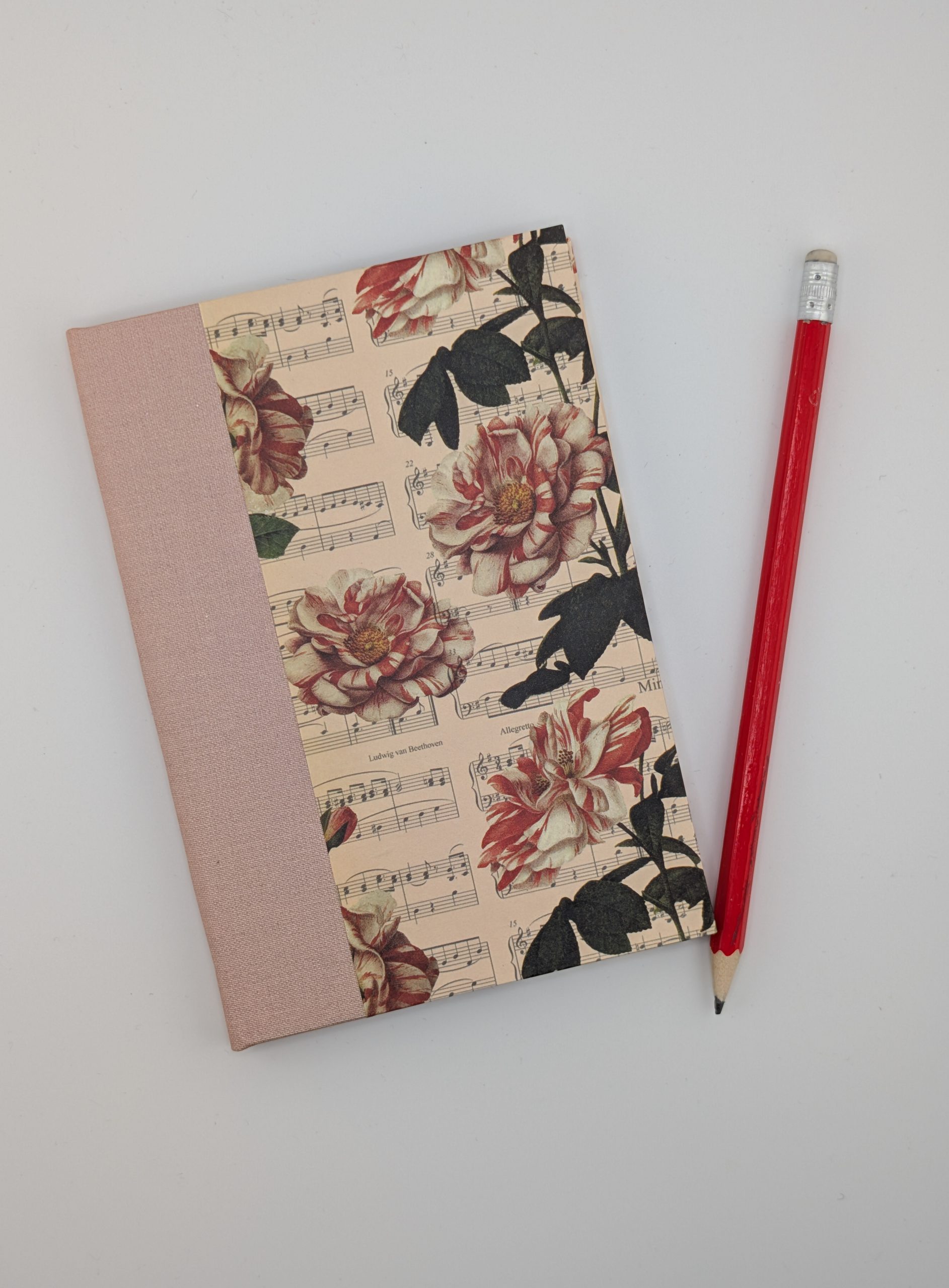 Each notebook has its own subtle character, reflecting both the handmade process and the reclaimed materials used. The solid binding allows the pages to open comfortably, making it easy to write across every spread. Thoughtfully made and environmentally conscious, this notebook is perfect for journaling, creative projects, or mindful note-taking.